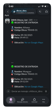 · Si se ha habilitado un grupo de trabajo de Slack para el seguimiento de los discos de transporte,